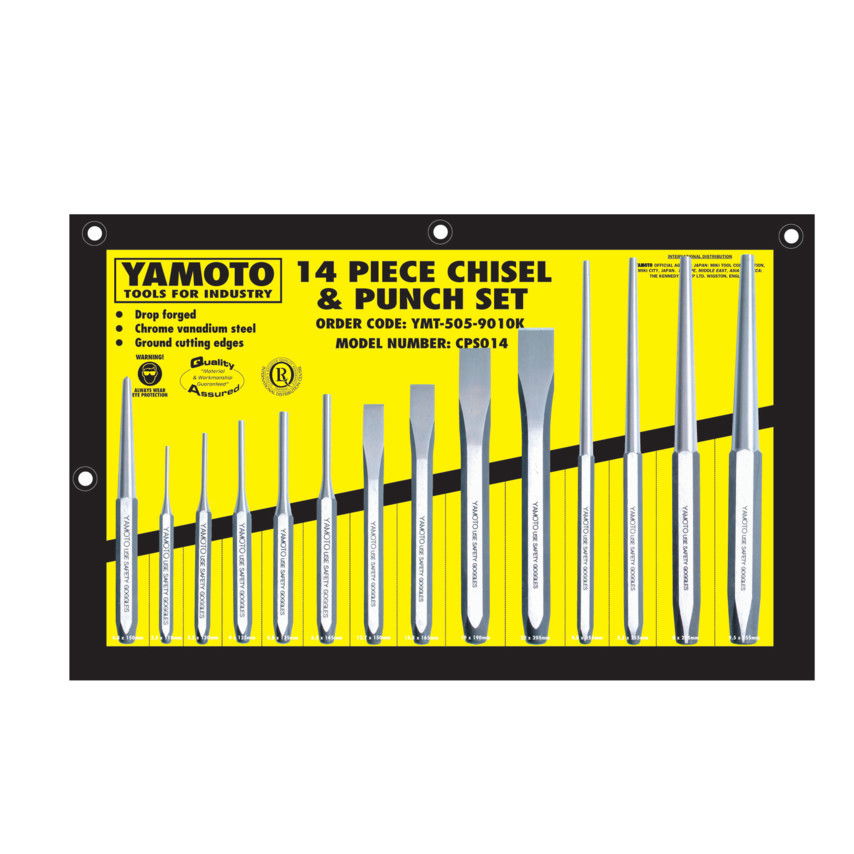 YAMOTO Króm-vanádium véső és lyukasztó készlet, 14 részes