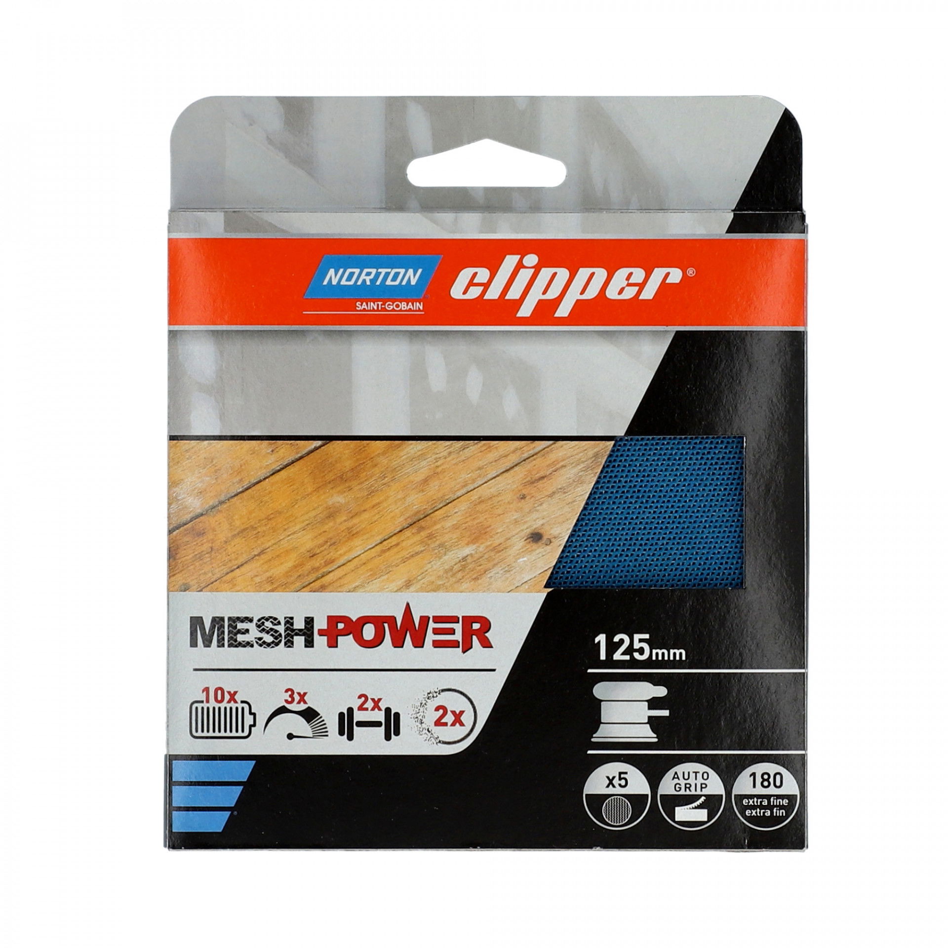A MeshPower mátrix szerkezete ezer apró lyukat tartalmaz a por eltávolításához a test felületéről, lehetővé téve a friss levegő lélegzését a műhelyben. A MeshPower a szabadalmaztatott Norton No-Fil® technológián alapul, szárazon vagy nedvesen is felhasználhatók, és a nyitott szerkezetnek és a prémium szemcsés rendszernek köszönhetően tökéletes kivitelűek. A tépőzáras hátlappal gyorsan és egyszerűen cserélhet korongot, sőt az innovatív hálómátrix azt jelenti, hogy nincs meghatározott lyukmintázat, nem kell aggódnia a lyukak illesztése miatt.