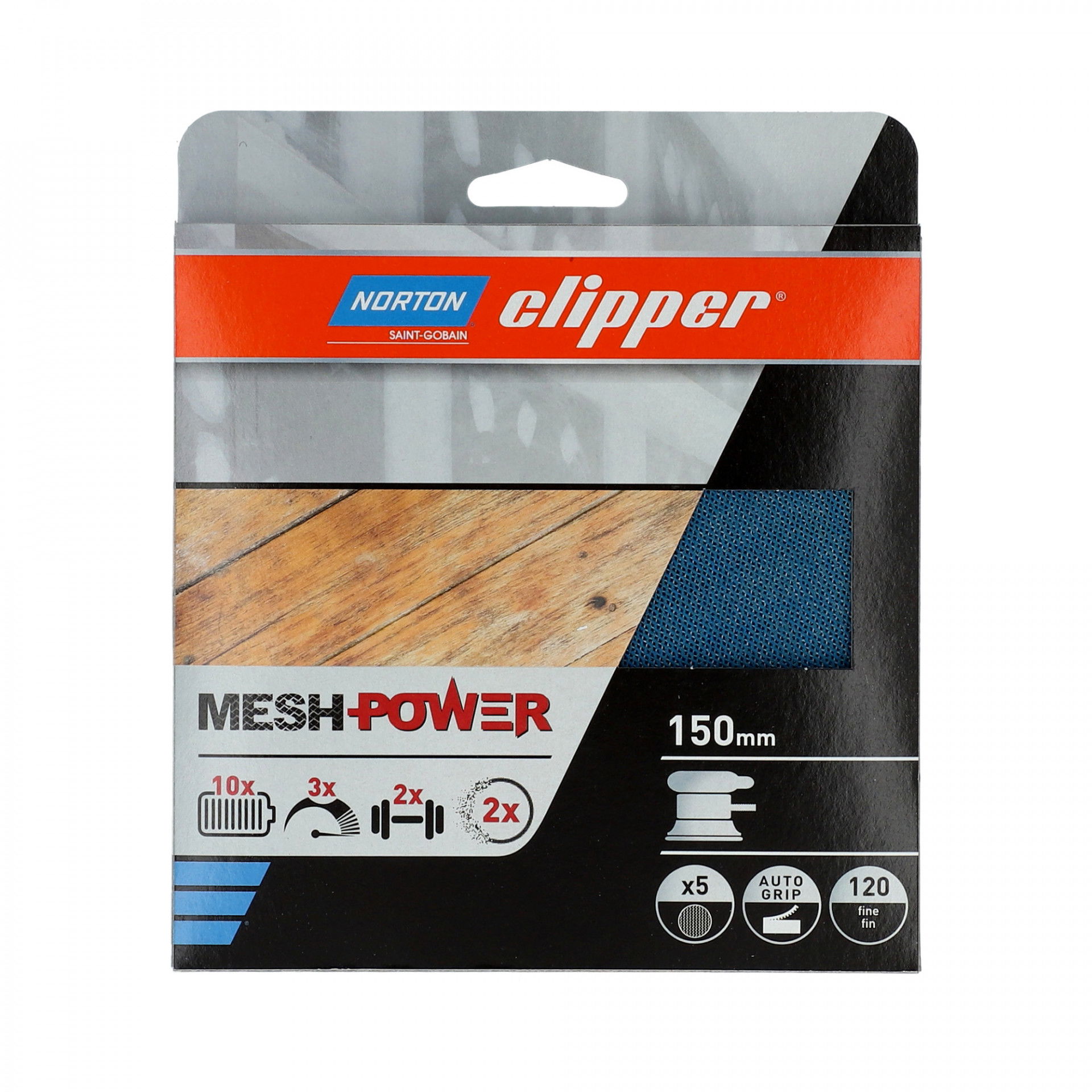 Norton Clipper MeshPower Ceramic tépőzáras csiszolóháló Ø150 mm P120, 5 db/csomag
