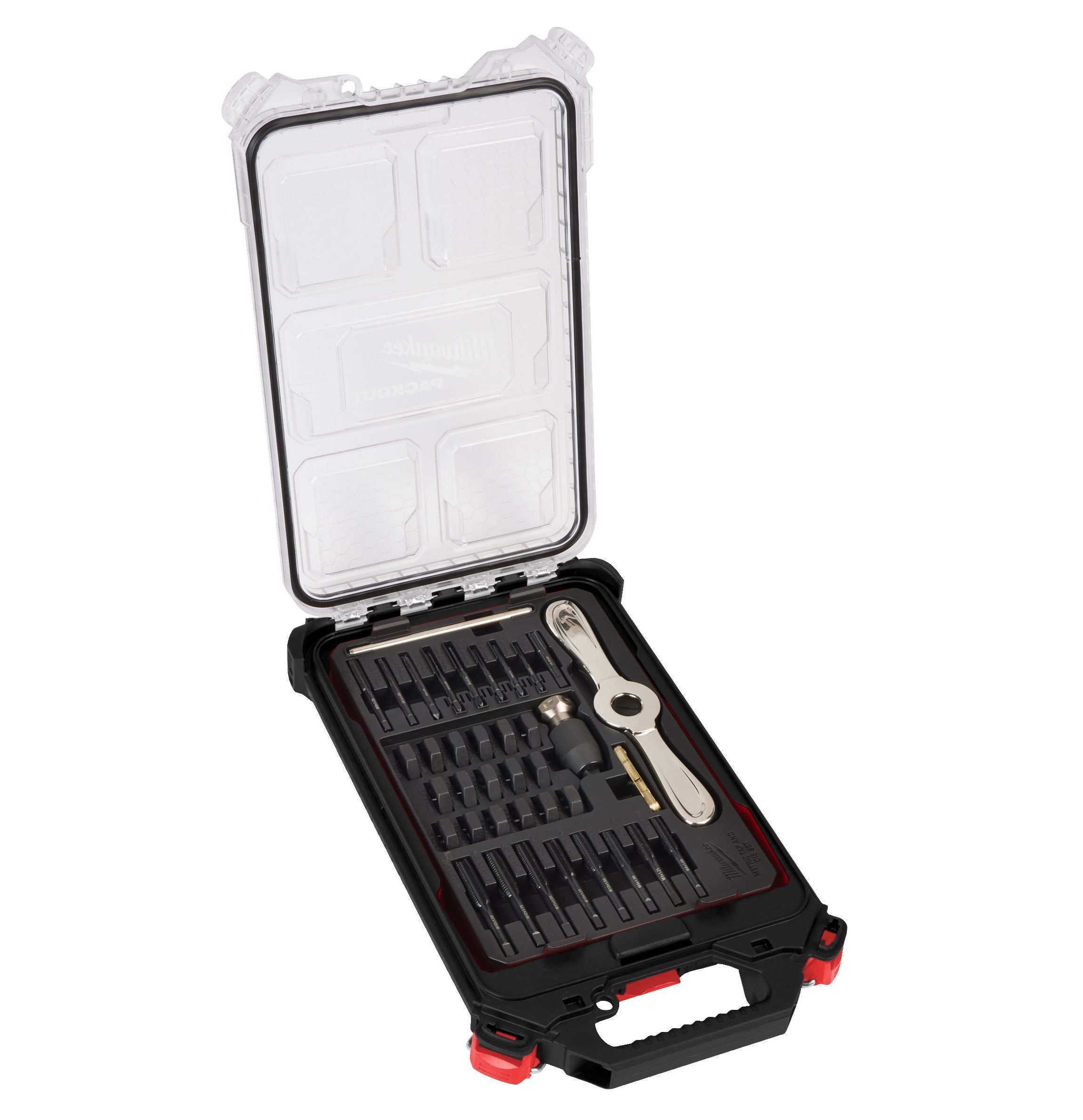 Milwaukee PACKOUT™ menet-metsző, -fúró készlet keskeny rendszerezőben, 38 részes